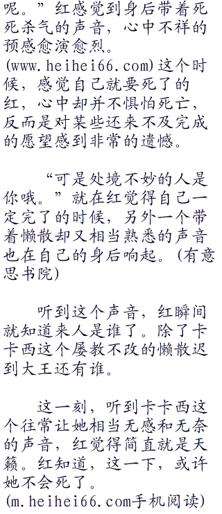 眼看着鼬的苦无就要刺到自己身上了,红的体内查克拉极度混乱了起来,瞬间脱离了自己刚刚施展的幻术的限制,身手矫健的往后一躲,红就已经躲开了鼬手中的苦无。