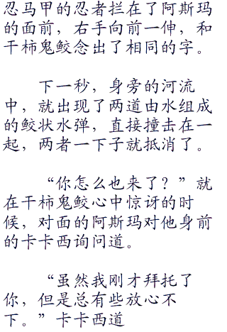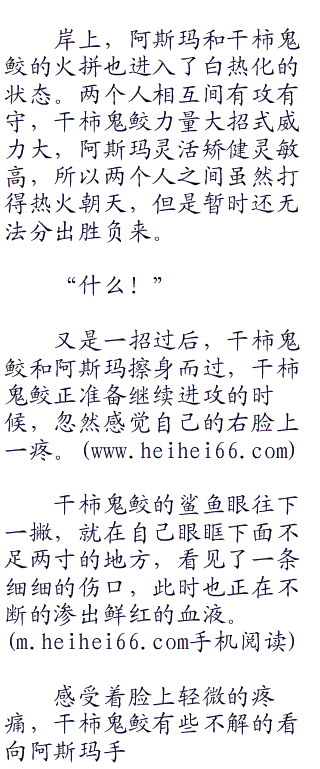 岸边,正在吃力的硬抗干柿鬼鲛进攻的阿斯玛,见到红跌进了水中,不由担心的叫喊了一声。