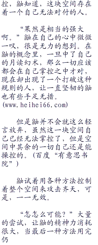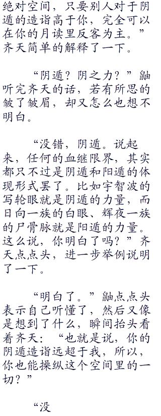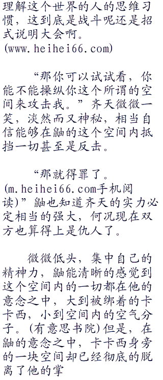 “你主宰的空间?”齐天像是听不明白一般的问道,眼睛里那不屑的神色却是显而易见,显然是对鼬所说的话完全不赞同。