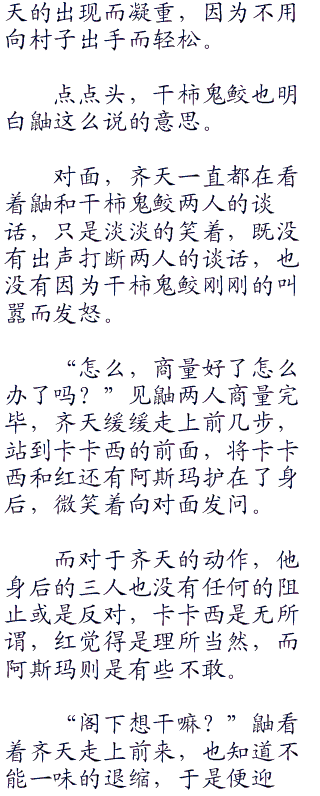 至于干掉干柿鬼鲛的想法,齐天的心里并没有。毕竟,干柿鬼鲛是晓组织的人,而晓组织的领导人却是齐天的学生,而这些学生基本上又是在为齐天帮忙,所以齐天又怎么会干掉和自己有着这样一层层关系的干柿鬼鲛呢,齐天只不过会是想要教训教训干柿鬼鲛一番而已。