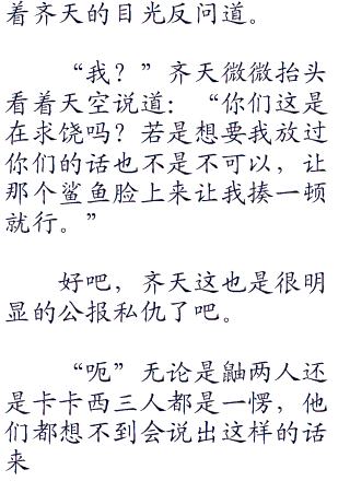 齐天这么说的原因,其实也是为了惹怒干柿鬼鲛而已,特意以一种相当蔑视的语气和揭他干柿鬼鲛的短的方式来惹怒干柿鬼鲛而已。至于齐天惹怒干柿鬼鲛的原因,也算是为了要替照美冥当初差点着了他的道来报复一下吧。