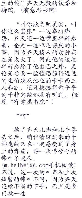 无论是看戏的卡卡西三人,还是在另一边有些好奇的鼬,听到这一声凄惨的叫声,也都是下意识的齐齐吸了口凉气。从齐天这一拳的效果和干柿鬼鲛这凄厉的叫声中,四人看着都觉得疼啊。