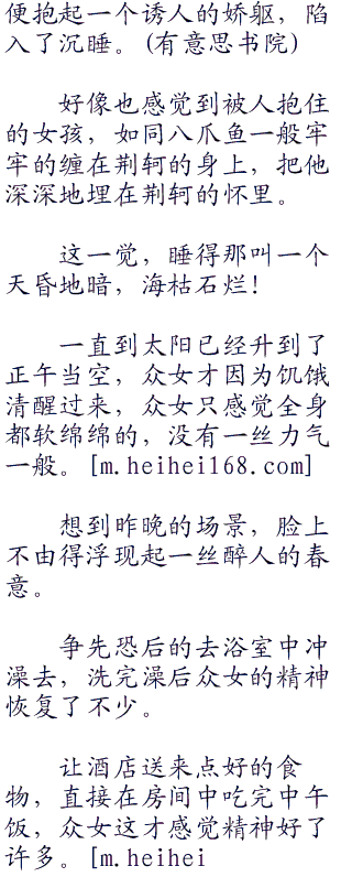 吃完的荆轲毫不留恋的直接拉好了窗帘,遮挡住自己足足盯了二十多分钟的朝阳,然后一下子倒在众女的中间,随