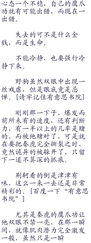但是野狗好像早有预料一般,在见过他施展了一次那个招式之后,身形猛地一个加速,在他移动的瞬间直接给他背后来了一下。