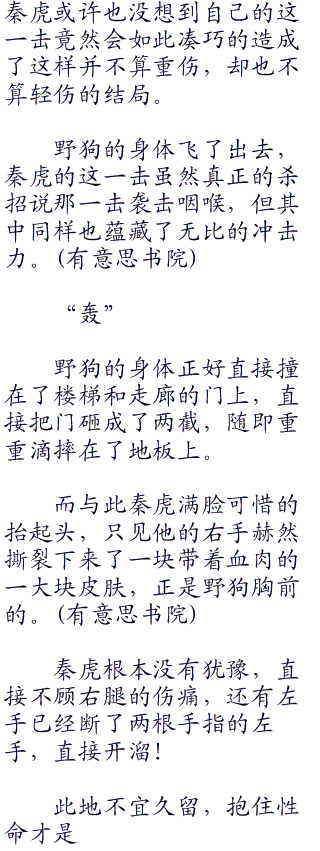 这一刻,秦虎好像看见了自己的未来,脑子里嗡嗡的,无边的黑暗再向他袭去,包围着他,吞噬着他。