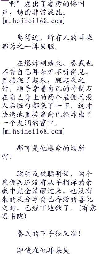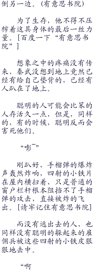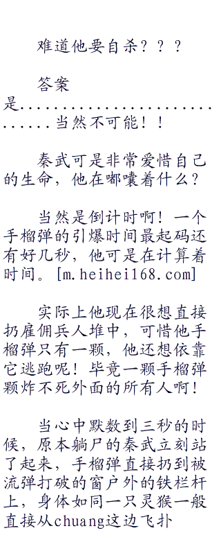 看着已经有人进屋扑了上来,虚弱的秦武嘴角闪现出一丝冷笑,他没多少力气了,但是扭开一个手榴弹还是可以的。