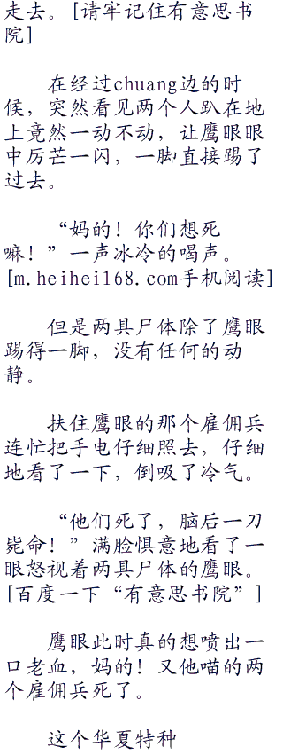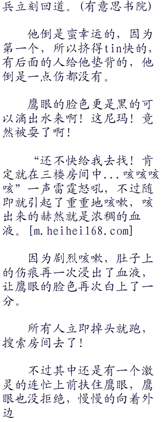 “没有在房间!我们进来的时候并没有看见任何人。”一群存活下来,有的被炸伤,有的没被炸伤,但是脸上都带着羞愧,其中就是第一个冲进来的那个雇佣