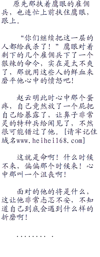 站在窗口满目狰狞的鹰眼恶狠狠地扫射着手中的冲锋枪,直到整个弹夹都打完!