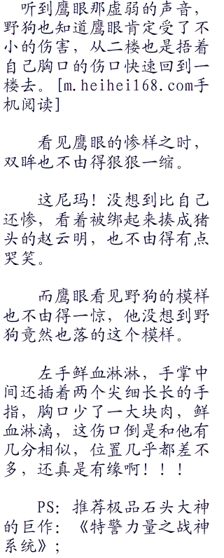 自己这么多人,竟然让一个人给跑了,自己付出了一只手还有肚子上一寸深长长的伤口,还死了好多个人。