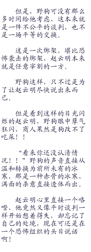 “我给你看一个视频吧!如果看完你还是不回心转意的话,就不要怪我心狠手辣了。”野狗从怀中掏出了一个手机,用完好的右手点击了几下,放倒了赵云明的眼前。