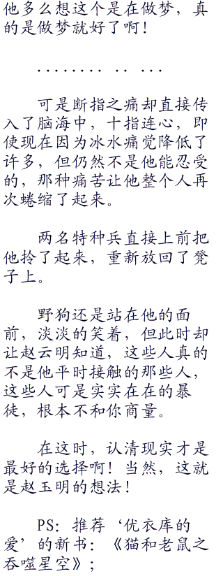 而野狗这话一出,赵云明更是心惊胆颤的。