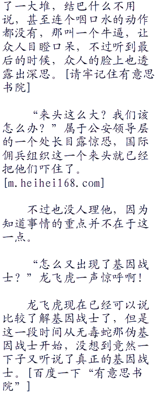 “不过现在最关键的问题,不是这个!而是这个野狗!他是个基因战士,而且还是个强大的基因战士,根本m国那边的资料共享,这个野狗曾经在a级基因战士手中逃脱,而且那还是五年前,鬼知道他现在是不是已经成为了a级基因战士啊!”