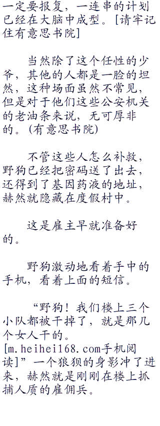 而且因为赵成赶时间浏览,所以根本没有注意到野狗夜晚出去了一趟,也下意识的忽略了恐怖分子的后援,实际上现在度假村酒店和外面埋伏控制现场的恐怖分子已经超过了一百名,就简直就是一个小型佣兵团了。