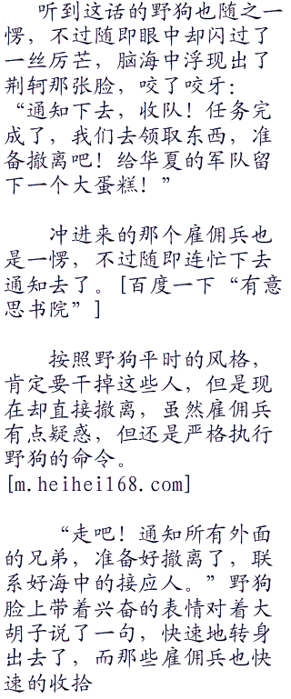 而且后来的补给人员可都是在野狗佣兵团呆了好几年的,这种恐怖分子的袭击可比野狗带的那帮新组建的人熟练多了。