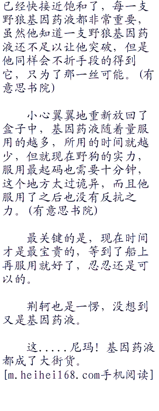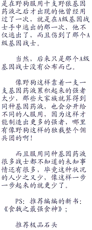 看见淡青色的密封瓶子,不正是野狗最为熟悉的野狼基因药液嘛!