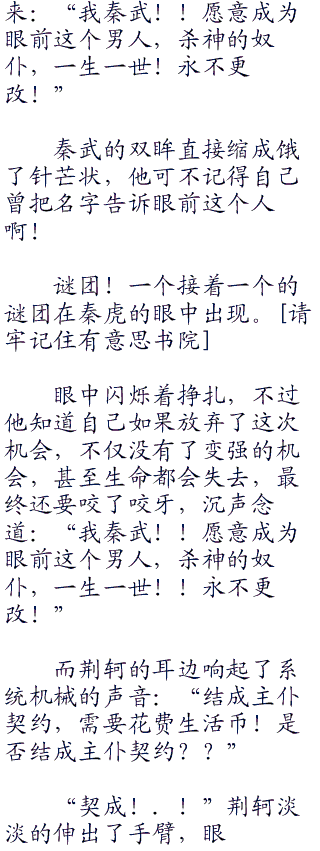然后也不管秦武答没答应,荆轲就开始淡漠地念了出