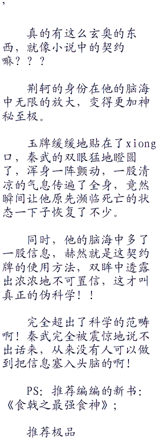 荆轲嘴角勾起一丝邪笑:“决定了就跟着我一起念吧!”
