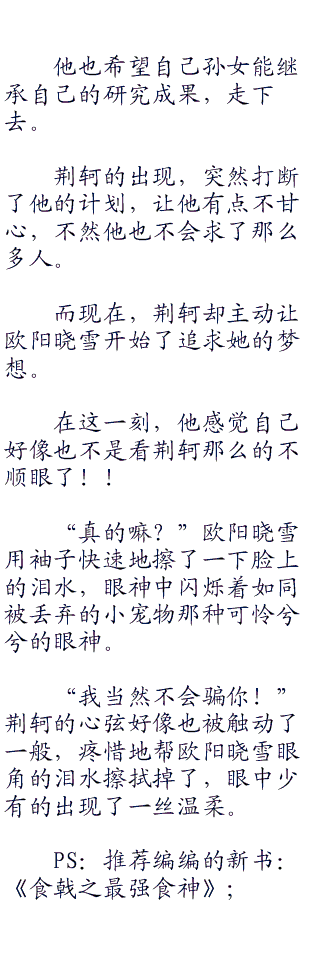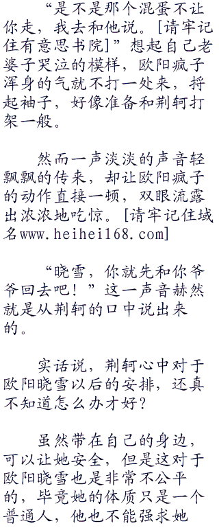 实际上欧阳晓雪也想回去看看,可是她不知道荆轲会不会放她离开。