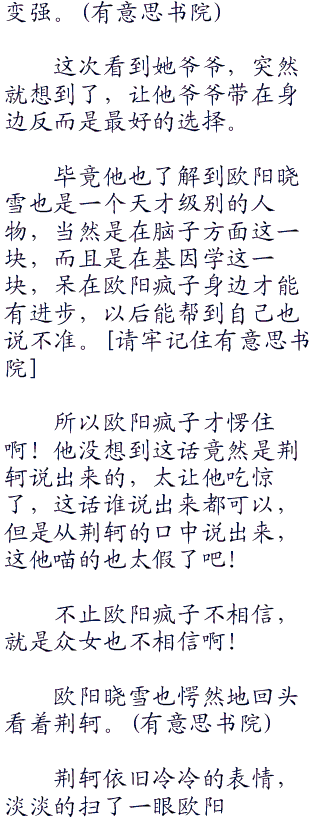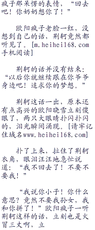 而且看着荆轲身旁那一个个美丽的女孩,欧阳疯子就有种说不出来的郁闷。