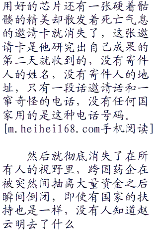 一天的时间,一个不顾一切的科学家的大脑是非常可怕的,他的所有可移动财产被他用各种手段快速抽离出来,随即赵云明带着一个早就备