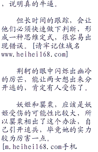 “竟然分成两路了啊!这两个丫头还真是让人不省心。”荆轲淡淡地看着前面观察出的两条道路,实际上有三条,不过那一条被荆轲给排除了,在他的角度来看,那一条道路明显就是留下的**阵,那条道路厚厚的树叶上的脚印明显要深了一点点,这是在荆轲恐怖的视力下才发现的,一只还好,