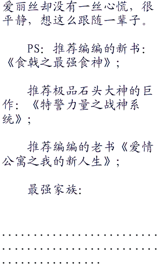 时间一分一秒的过去了,爱丽丝的呼吸也变得沉重了起来,她不知道自己赶了多长的时间的路,只知道一直跑着,跟着前方的那个身影。