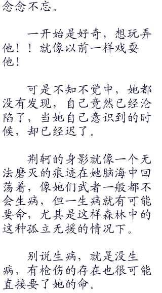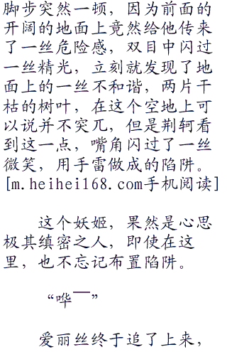 荆轲看着地上突然变得整齐的杂草和树叶,根本不像是有人踩踏过的,这时候,应该是妖姬最后鼓起一丝力气扫除痕迹的。
