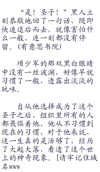 这个人就是犀牛和猿弭口中的圣子,如果让华夏军方看见的话,一定会认识这个人赫然就是项少军,虽然气质和以前有很大的不同,但确实就是黑道的一个传奇人物项少军。