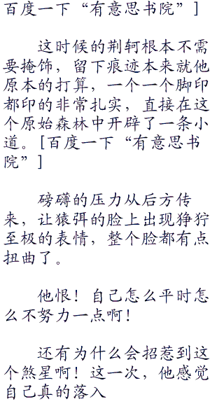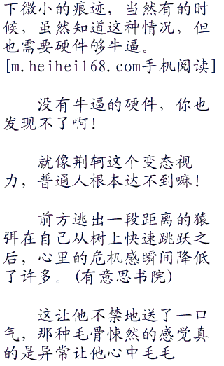 借着阳光,荆轲那超动态视力看见了上方一颗树上的一根枝干有一个细微的抓痕,只有一点点,几乎微不可闻。