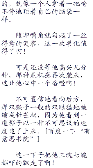 一个纵身,身体已经跃上了树枝上,超强的动态视力快速地盯着身下的枝干,双眼如同显微镜一般细微的检查,果然发现了问题,一个淡到极致的手印,蹭掉了一层已经死了很久的微薄树皮。