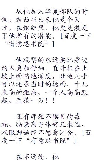 同样一身作战服的项少军,随着直升飞机来到了毒蛇最后的死亡之处。