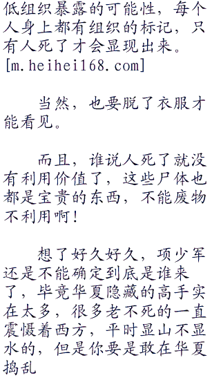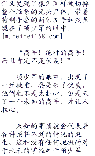 从直升机上轻飘飘的落下,看着满地的断肢残骸,项少军一直非常平静的双眸中也不由得出现了一丝凝重。