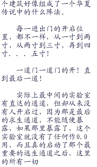 像这种小型实验室,都是老久以前的实验室,后来被分配给他们,他们神秘的组织在全世界都拥有各种各样的实验室,很多都已经遗弃了。
