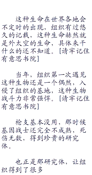 众所周知,地球生物最基本的元素都离不开c,但是这种智慧型的生物却得到了一个不可思议的结果,基本形态并不是c,而是一种未知的元素,并且这种生命的强韧远远超于人类。
