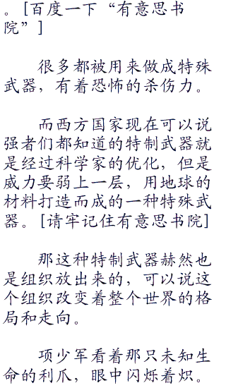 但这个好像兽爪还有那和人类完全不一样的手臂,因为那肌肉颜色并不是红色的,血液也不是红色的,而是蓝色的,外面的皮肤是青黑色的,地球上未知的动物根本就没有任何东西和这个完全相符合的啊!