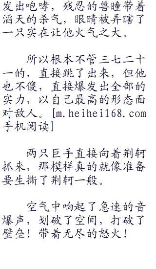 “混蛋!给我去死!”而就在这时,一声咆哮声响起,就是那个瞎了一只眼的白人大汉,望着荆轲狂冲而去的身体瞬间暴涨了起来,从一米九直接暴涨到了两米五。