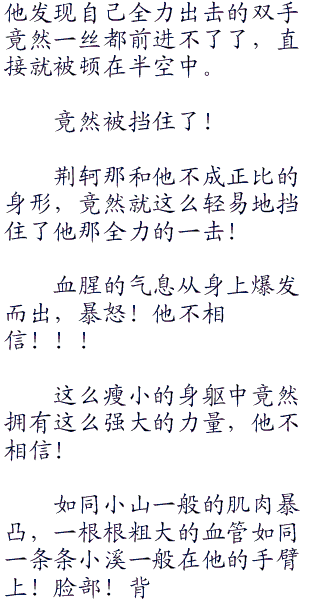 双眼阴冷的盯着荆轲,虽然挡住了那细小的暗器,但是心底却仍然充满了忌惮,太诡异了啊!