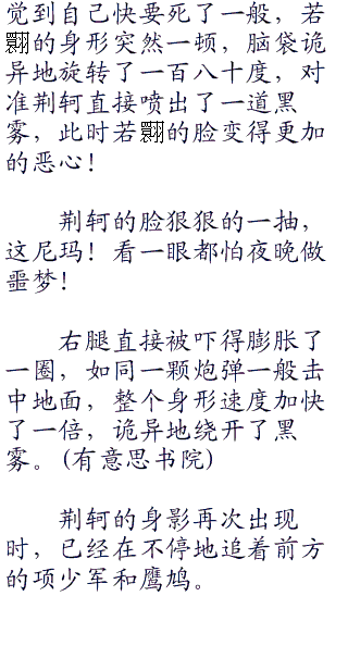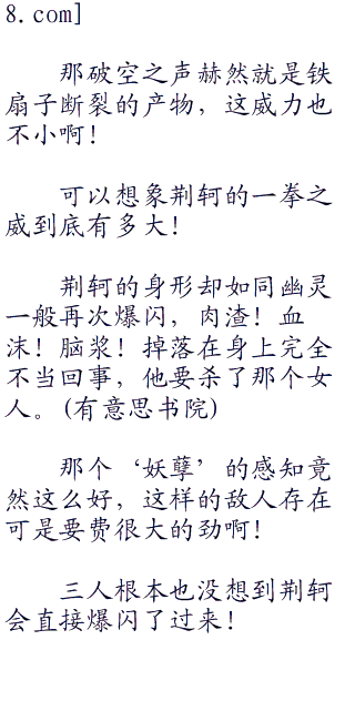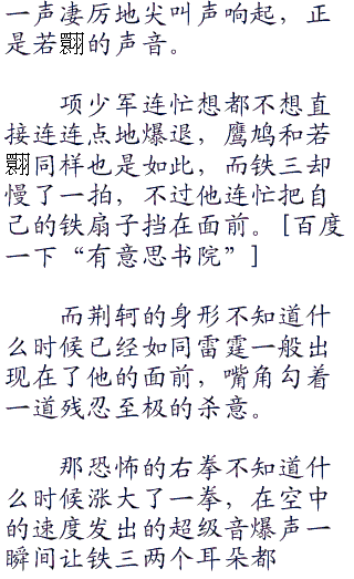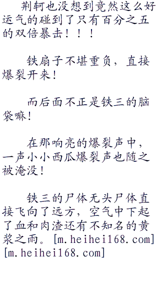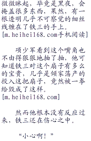荆轲也惊奇的望着铁三,应该有一根细线在控制着铁扇子吧!他竟然没注意到。