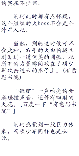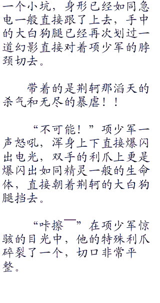 时间根本不容许荆轲想太多,因为项少军的攻击已经来了。