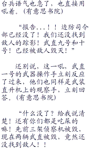“武直一号!武直一号!快给我回答那边的情况!”这个电