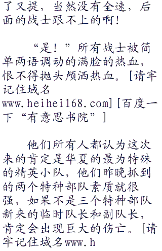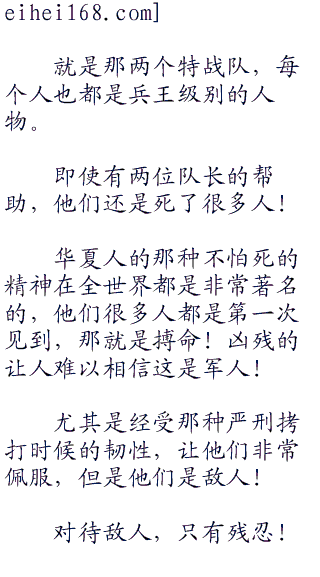 “这也是我们成立你们最重要的理由!你们就是我国最为锋利的一把尖刀!!捅入敌人心脏的尖刀!”