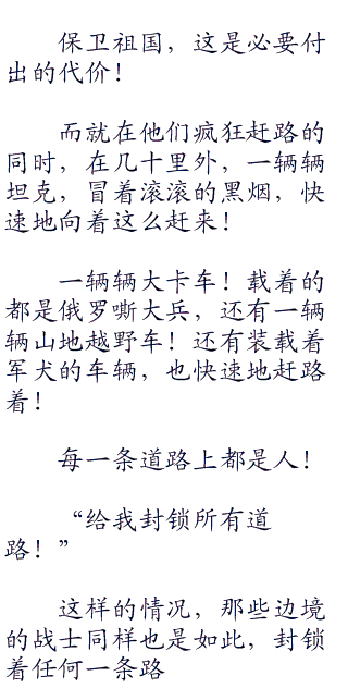 “后援马上就赶来!敌人太多,我们就给你们充分的武装措施!坦克!战士都已经在前进的路上!”