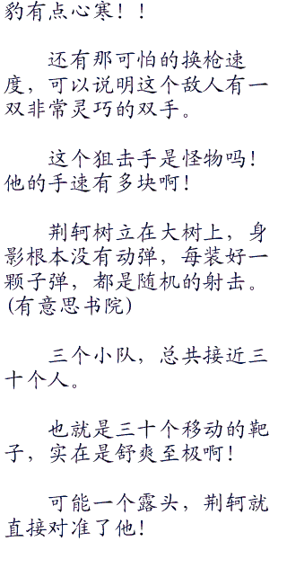 繁杂的树叶,还有夜间到阴影都应该是狙击手的最大敌人,可是现在手下不停地死亡却完全颠覆了他的认知。