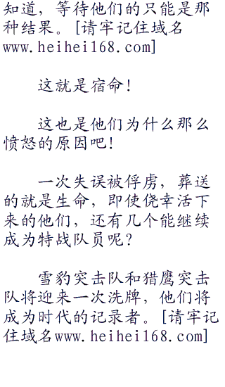 这是他们最大的痛苦,成为一个特战队员,他们花费了无数的训练的岁月,忍受了无数的折磨。