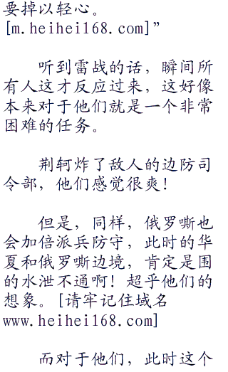 雷战直接挥手打断,冷静至极的分析道:“可是个毛!你们认为守卫边境的俄罗嘶军人弱吗?而且在这种时候,他们肯定会加强对边境的看守,我们这一次回去也是一个九死一生的局面,不