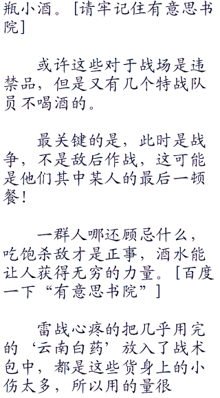 “我告诉你们!老子就是背也要把你们背出去,死在这破地方多可惜,要死也死在自己祖国的土地上,那里才是我们的根!”雷战声音透露出无比的坚定,一小子就震慑住了张大炮和左鹰一群人,满满的感动啊!