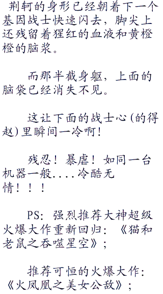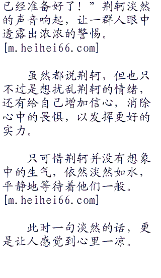 而对于这些被屠宰的人,荆轲的淡然的脸色却丝毫没有改变,好像一切都是早已注定的一般。