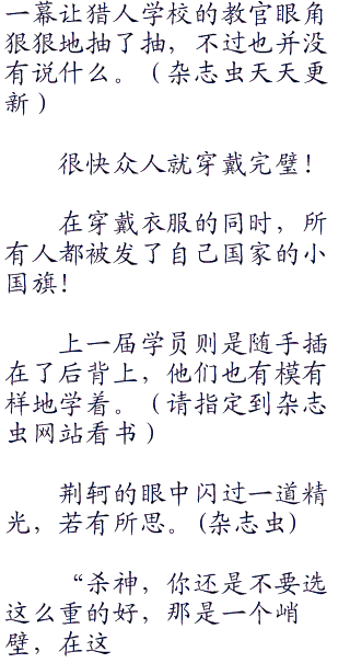 上一届的学员也是一样,他们也被荆轲这样的姿态给吓愣住了,随即眼中却出现了一丝戏虐的笑容。