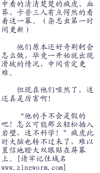 “是啊!不过那山可不是那么好爬的啊!二百五十公斤的重量相对于那个岩壁来说,很重了,很难承受。”疯虎眼中闪烁着智慧之光。