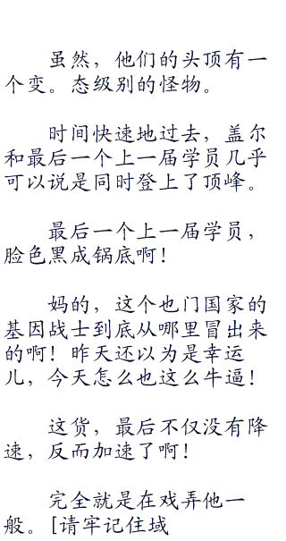 “快走吧!我们可不能输给新人!”盖伊眉头皱了皱,看着马克斯那张隐约不甘的脸,心中有点无奈地叹了口气。